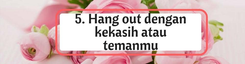 Nongkrong dengan kekasih atau sahabat memang ampuh banget untuk memperbaiki suasana hatimu. Kepada mereka, kamu bisa bercerita mengenai masalahmu, atau tanpa perlu bercerita, kamu bisa melakukan aktivitas seru berasama mereka. Karaoke sambal dancing gila-gilaan pasti membuatmu lebih ceria, Bela.