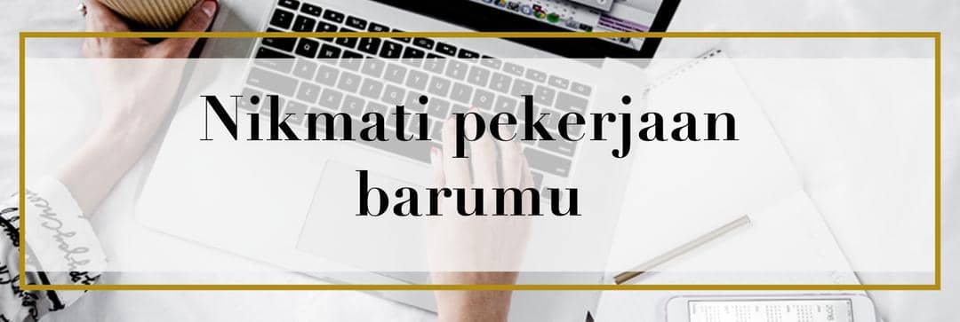 Tak ada cara lain untuk menjadi sukses selain menikmati apa yang kita kerjakan. Tersenyumlah dan nikmati peran barumu di pekerjaan dan lingkungan yang baru. Tantang dirimu untuk belajar hal-hal baru dan mencintainya. Kamu adalah orang yang paling beruntung untuk mendapatkan pekerjaan itu.