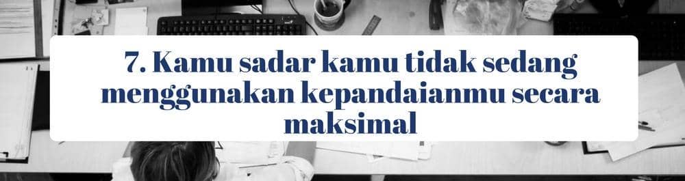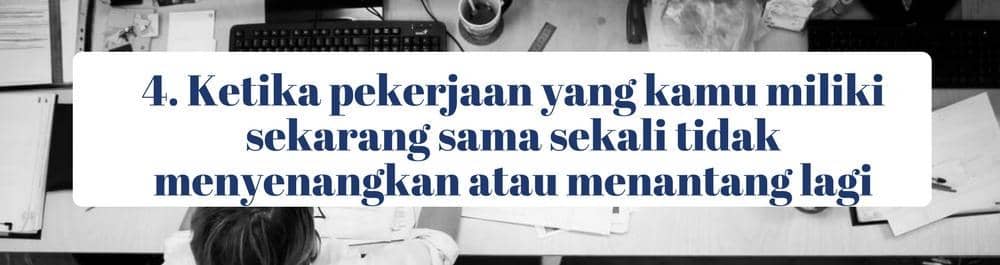 Apa kamu sudah memiliki pekerjaan tapi pekerjaan itu sama sekali tidak memberimu tantangan? Rasanya setiap hari membosankan dan kamu hanya bergerak seperti robot saja? Akhirnya kamu jadi tidak memiliki motivasi untuk memberikan yang terbaik dalam pekerjaanmu. Jika memang ini sedang terjadi, mungkin kamu harus berpikir kembali, apakah memang pekerjaan ini yang ingin kamu lakukan seterusnya? Jika tidak, mulailah berpikir bagaimana caranya membangun karier yang benar-benar kamu inginkan.