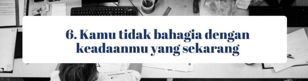 Apakah pekerjaanmu ini hanya membuatmu depresi dan tidak bahagia setiap hari? Kamu hanya bisa berkeluh kesah setiap harinya? Jika memang pekerjaanmu itu sama sekali tidak membuatmu bahagia, untuk apa kamu melakukannya? Coba pikirkan kembali, karier seperti apa yang ingin kamu miliki, karier seperti apa yang dapat membuatmu bahagia? Kejarlah karier yang demikian.