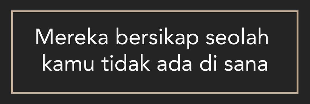 Kamu berada satu ruangan dengan mereka. Sayangnya, mereka sangat jarang mengajakmu ngobrol. Mereka lebih asyik ngobrol bersama tanpa melibatkanmu. Kamu hanya diajak bicara ketika benar-benar ada keperluan mendesak.