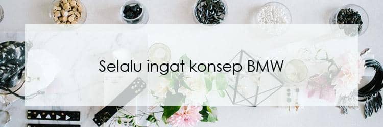 Dalam etika makan, kamu perlu mengingat konsep BMW yang berarti bread, meal dan water. Jika kamu kebingungan saat mengatur tata letak meja makanmu, ingatlah bahwa roti (B) selalu berada di sisi kiri, makanan (M) berada di tengah dan air (W) di samping kanan.