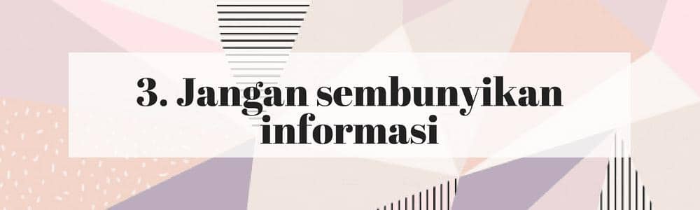 Memberikan perkembangan berita, data, dan informasi memang nggak bisa ditunda. Terkadang ada teman kerja yang sengaja menyembunyikannya untuk kepentingannya sendiri. Dampaknya akan membuat bingung teman kerja yang lainnya. Hindari juga melebih-lebihkan informasi. Memang setiap orang punya penangkapan yang berbeda mengenai satu informasi. Nggak ada ruginya untuk mencari lebih dalam.