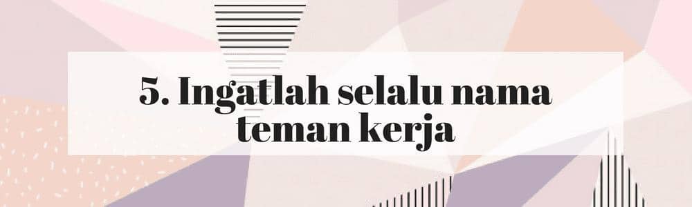 Menyebut nama teman memang perkara sederhana, namun sayangnya ini bisa membuat jengkel kalau salah sebut nama. Mengingat nama teman dan menyebutkannya dengan benar sebagai bentuk kalau kamu menghargainya. Posisi sebagai anak baru maupun sudah senior, hal yang seperti ini tetap berlaku. Dalam dunia profesional ada baiknya untuk nggak menyebut nama julukan di kantor. Lain lagi kalau ia mempersilakan saat di luar kantor dan bukan urusan pekerjaan.