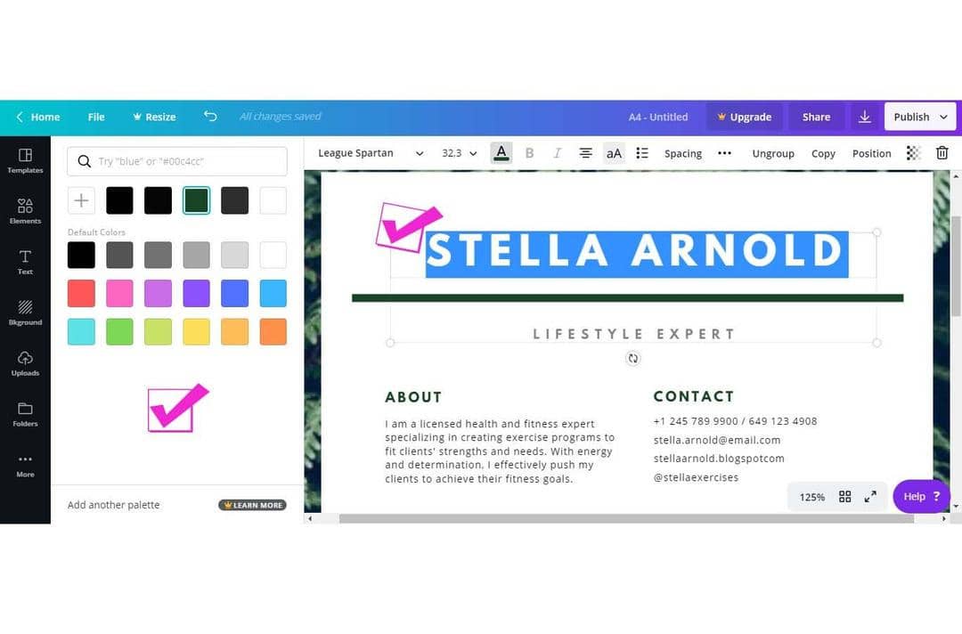 3. Oh ya, walau Canva sudah menyediakan layout, kamu tetap bisa kok mengubah warna font serta mengubah jenis font.