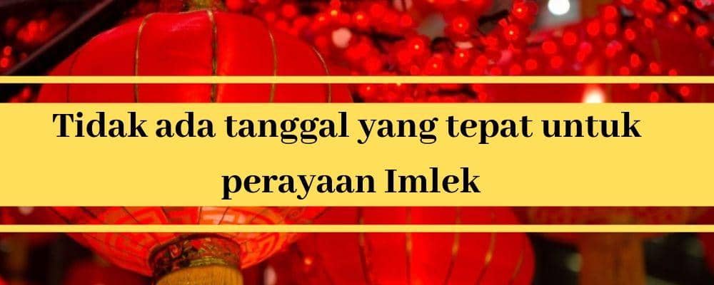 Tahun Baru China tidak pernah tepat kapan waktunya. Berbeda dengan perayaan Natal yang memakai kalender Gregorian yang selalu dirayakan pada tanggal 25 Desember. Menurut kalender Lunar, tahun baru China berkisar tanggal 21 Januari sampai 20 Februari. Namun, di tahun ini tahun baru China jatuh pada tanggal 5 Februari.