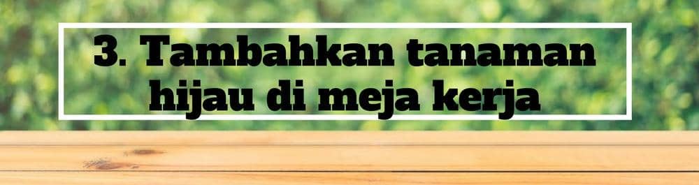 Saat ini banyak sekali tanaman dalam ukuran kecil sehingga bisa kamu letakkan di tempat biasanya kamu bekerja. Bukan hanya sebagai pemanis meja, tetapi tanaman ini punya kegunaan. Saat stres kamu perlu pemandangan yang bisa menyegarkan pikiran. Kalau tempat kerjamu berada di kota besar tentu akan susah menemukan pemandangan yang dimaksud. Memberikan tanaman hijau di meja kerja dapat mengurangi tekanan kerja, meningkatkan perasaan positif, hingga bisa menenangkan pikiran.