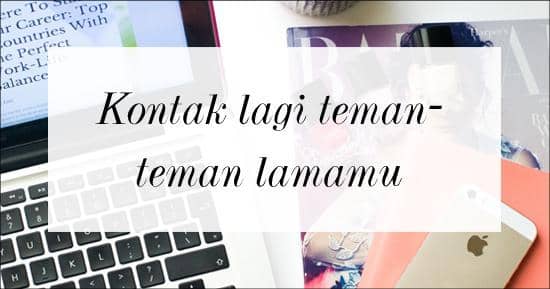 Menjaga hubungan yang tulus dengan teman-teman juga berarti dengan teman-teman lamamu, Bela. Siapa tahu suatu hari nanti kamu membutuhkan koneksi dengan mereka. Jadi, carilah mantan rekan kerjamu atau teman-teman saat SMA dan kuliah di media sosial. Tak ada salahnya kan menjaga tali silaturahmi?