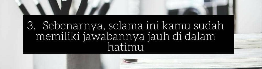 Entah karena kalian harus menjalani long distance relationship (LDR) atau karena pekerjaanmu benar-benar menyita waktu dan perhatianmu, kita harus menerima bahwa hidup nggak selalu berjalan sempurna sesuai dengan yang kita harapkan. Kadang, kita pun harus puas dengan just being okay. Percaya deh, tak ada seorang pun yang bisa memberikan jawaban tersebut selain kamu sendiri. Jadi jangan takut memilih, ya.