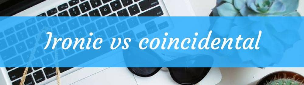 Ironic atau ironi adalah keterangan untuk menggambarkan kejadian buruk yang terjadi, sedangkan coincidental adalah kejadian yang kebetulan terjadi. Jadi, ketika kamu ingin menyampaikan permintaan maaf terlambat datang karena ada insiden di perjalanan, maka insiden tersebut adalah ironi, bukan sesuatu yang kebetulan.