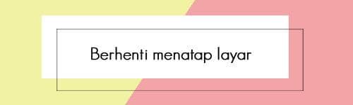 Terlalu banyak paparan sinar dari layar bisa membuat matamu lelah dan berat. Setiap dua puluh menit, usahakan untuk mengalihkan pandanganmu dari layar. Lihatlah keluar jendela atau pejamkan sebentar matamu.