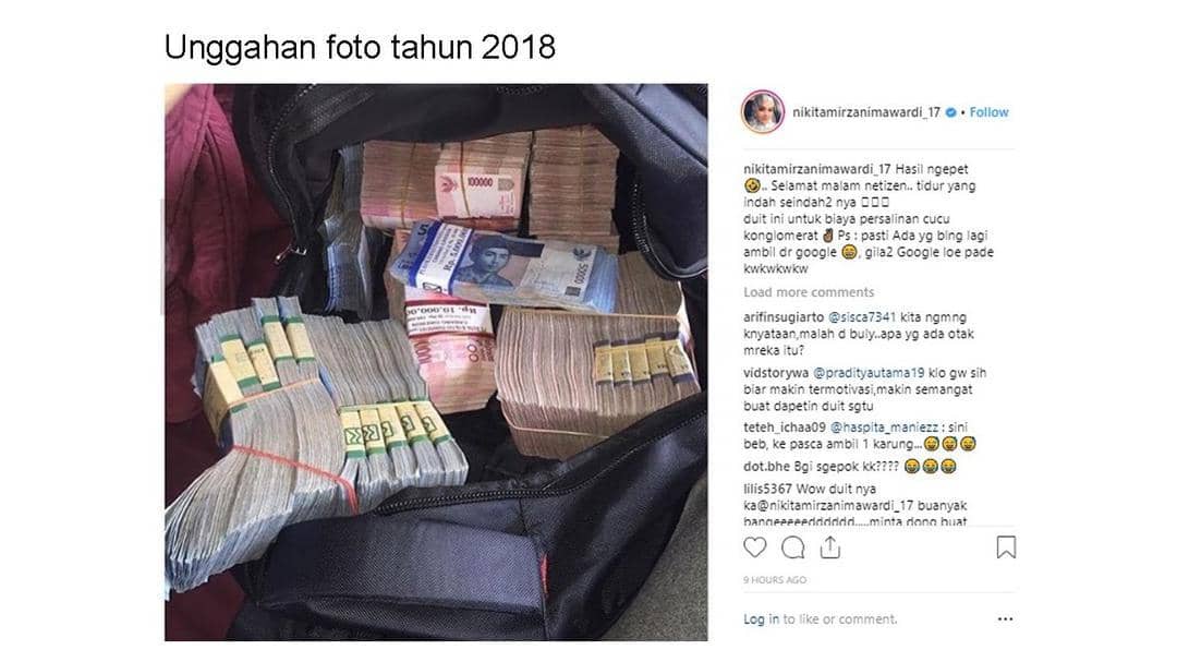 Nah, kita-kira apa ya tujuan Nikita Mirzani mengunggah ulang foto lama yang menunjukkan tas penuh uang itu? Apakah hanya untuk dijadikan 'ilustrasi' aja menyesuaikan dengan momen yang tengah ia bicarakan?
