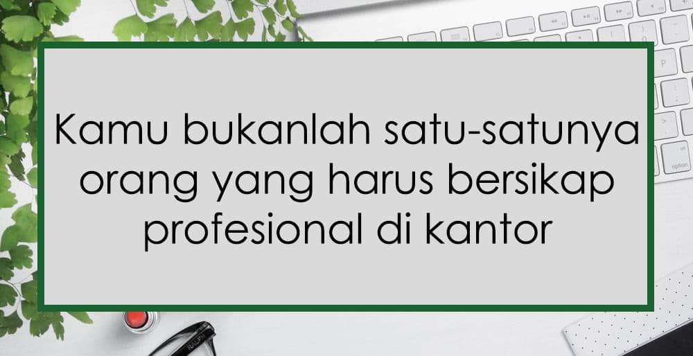 Nggak cuma kamu, mungkin teman kantor di sebelahmu bahkan atasan kamu juga punya masalah pribadi yang memenuhi kepalanya. Bedanya, mereka berusaha tenang dan fokus terhadap pekerjaan. Bahkan, bekerja adalah cara efektif untuk melupakan masalah pribadi sejenak bagi sebagian orang.
