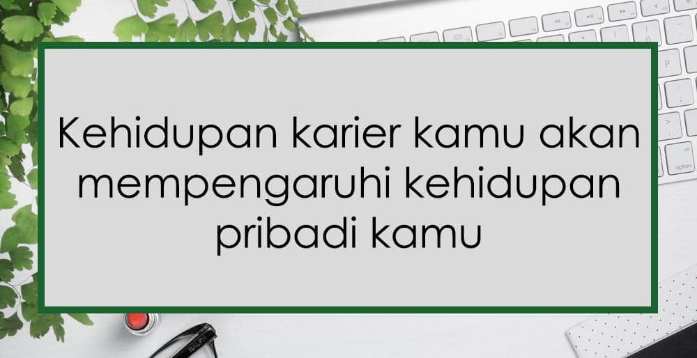 Ketika kamu memiliki masalah pribadi, kinerjamu di kantor akan terpengaruh. Begitu juga sebaliknya ketika kinerjamu dinilai buruk oleh atasan sehingga mempengaruhi kehidupan sehari-hari. Ingatlah bahwa apapun masalah yang kamu hadapi sama pentingnya dengan menyelesaikan semua tugasmu hari ini. Jadi, jangan buang waktu kamu untuk terus memikirkan masalahmu.