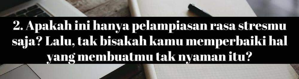 Kalau kamu pikir dengan berganti pekerjaan maka rasa stresmu akan hilang, kamu tak sepenuhnya benar. Bisa saja kan kamu akan merasa lebih tertekan di tempat kerja yang baru? Kalau kamu mempertimbangkan perubahan karier, ada baiknya lebih bijaksana mencoba memperbaiki masalah apa yang terjadi dengan pekerjaanmu saat ini. Cari pokok masalahnya dulu, jangan asal melangkah ke tempat baru.