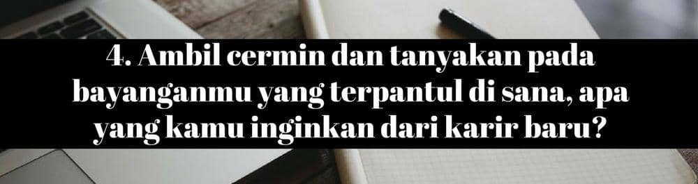 Apa sih yang sejatinya kamu inginkan dari karier barumu? Pikirkan secara menyeluruh mengenai penilaian diri dari nilai-nilai apa yang kamu miliki, seperti keterampilan, passion dan kepentingan diri untuk dipertimbangkan ketika kamu sedang memikirkan perubahan karier dalam hidupmu. Mungkin kamu juga bisa melakukan tes kepribadian untuk menentukan karier apa yang sebenarnya cocok dengan dirimu.