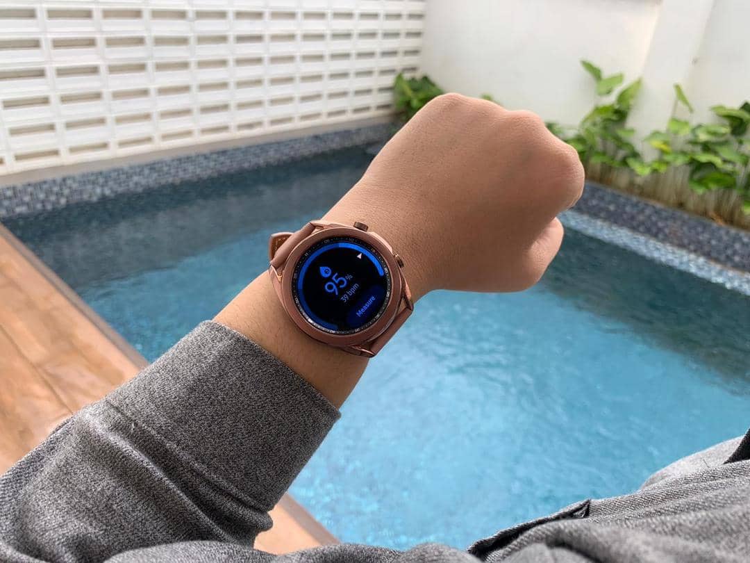 Banyak orang yang kini mulai sadar pentingnya kadar oksigen dalam darah. Jika Galaxy Watch 3 ada dalam genggaman, kamu bisa mengukurnya dengan mudah. Saat menggunakan fitur ini pastikan posisi tangan di meja dan tidak jauh dari jantung. Pengguna juga dianjurkan dalam posisi diam dan tidak bicara saat menggunakan fitur ini.