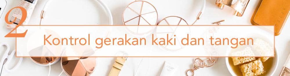 Orang yang profesional nggak akan menggerakkan kaki dan tangan secara berlebihan. Hindari juga untuk melakukan hal yang kurang elegan seperti menggaruk, menggerakkan kaki ketika duduk, sering merapikan rambut, hingga mengetukkan jari-jari ke meja. Beberapa kegiatan itu memang sering diyakini sebagai tanda kamu sedang nggak percaya diri atau menyembunyikan sesuatu. Oleh karena itu, nggak ada salahnya untuk bersikap tenang agar tampak elegan. Menyilangkan tangan atau menaruh di pinggang bukan merupakan pose yang bagus saat berkomunikasi dengan teman dan Atasan.