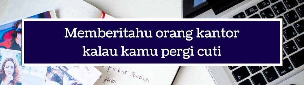 Nggak mau dong liburan kamu terganggu masalah pekerjaan? Cuti adalah hak semua karyawan yang bisa diambil kapan saja, maka sebelum cuti kamu perlu memberitahu teman kantor, minimal teman satu tim, kalau kamu akan cuti. Caranya bisa dengan mengirimkan e-mail pemberitahuan atau menandakan kalender bersama.