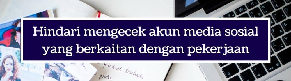 Kalau bidang pekerjaan kamu terkait dengan media online, biasanya kamu juga follow akun media sosial kantor kamu. Saat liburan, lebih baik kamu melihat-lihat akun media sosial orang lain dibanding punya kantor. Meski nggak berkaitan langsung dengan kamu, namun mengecek media sosial kantor bisa bikin kamu teringat pekerjaan. Liburan jadi kurang tenang, deh.