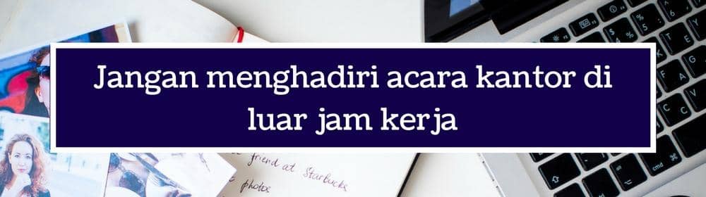 Kalau kamu terima undangan yang jadwalnya setelah jam pulang kerja, kamu bisa menolak untuk hadir kalau nggak sangat penting. Cerdas dalam memilih event mana yang mau kamu hadiri bisa mencegah kelelahan. Nggak mau kan besoknya nggak bisa ngantor karena sakit?