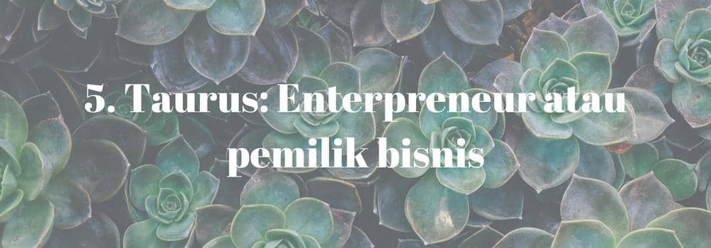 Zodiak Taurus memiliki tekad yang tinggi dan passion besar untuk segala sesuatu yang membuatmu jadi salah satu pekerja paling giat yang teman-temanmu kenal. Sifat keras kepalamu yang alamiah membantumu tetap bertahan saat yang lain sudah menyerah, sehingga kamu sangat cocok menjadi seorang enterpreneur atau pemilik bisnis.