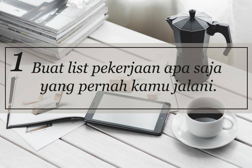 Bagian ini sebetulnya dikhususkan untuk kamu yang telah memiliki banyak pengalaman kerja atau sering berpindah dari satu perusahaan ke perusahaan lainnya. Jika kamu sudah membuat list, beri tanda bintang untuk jenis pekerjaan yang sangat kamu senangi. Sisanya, buat urutan pekerjaan mana yang masih membuatmu tertarik hingga yang tak kamu sukai. Jika kamu sudah membuat urutan, buat penjelasan dan alasan satu persatu kenapa kamu menyukai atau tidak menyukai perjaan A dan B.