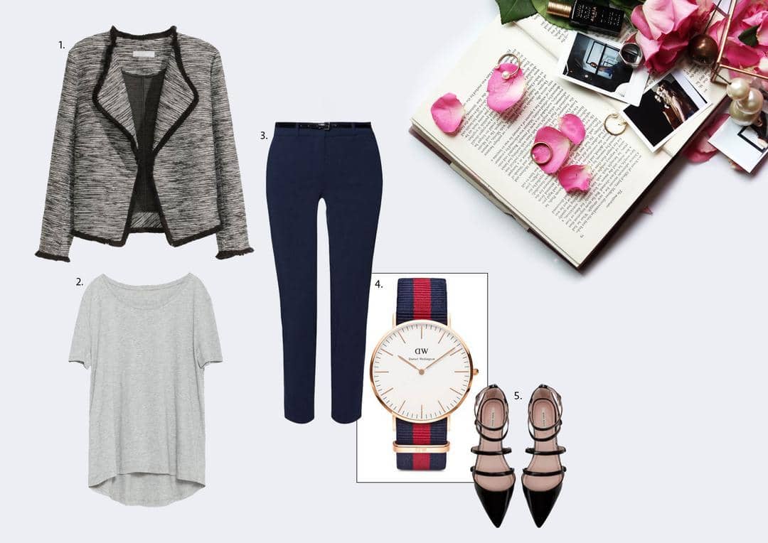 Bingung karena kamu harus menghadiri pertemuan penting dadakan siang ini? Jangan khawatir, Popbela punya solusinya! Coba gunakan tweed jacket untuk menyembunyikan sisi kasual dari t-shirt yang sedang kamu kenakan dan lengkapi dengan menggunakan celana bahan berwarna navy. Jam tangan dengan motif garis merah dan biru serta mary-jane flats akan melengkapi kesempurnaan penampilanmu yang kini tidak lagi terlihat santai.