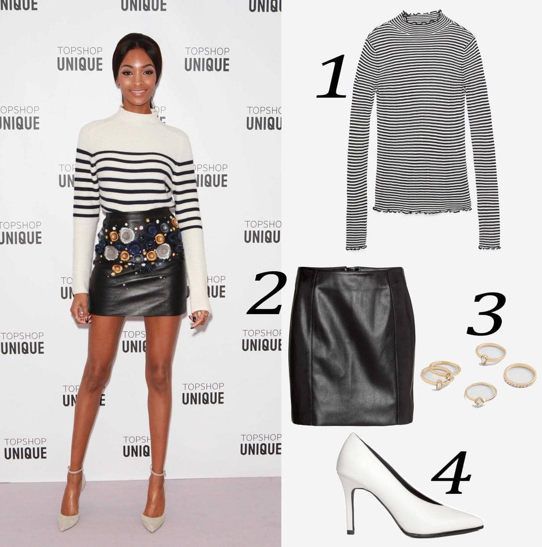 Tampil tidak biasa dengan sweater bermotif tentu sudah cukup statement! Hari ini, Popbela jatuh hati dengan pilihan klasik sweater garis-garis yang dikenakan oleh top model, Jourdan Dunn. Untuk menyempurnakan look-nya ia memilih kombinasi rok kulit yang berhasil memberikan kesan edgy secara instan. Jangan lupa untuk mengenakan beberapa aksesori seperti cincin sebagai pelengkapnya.