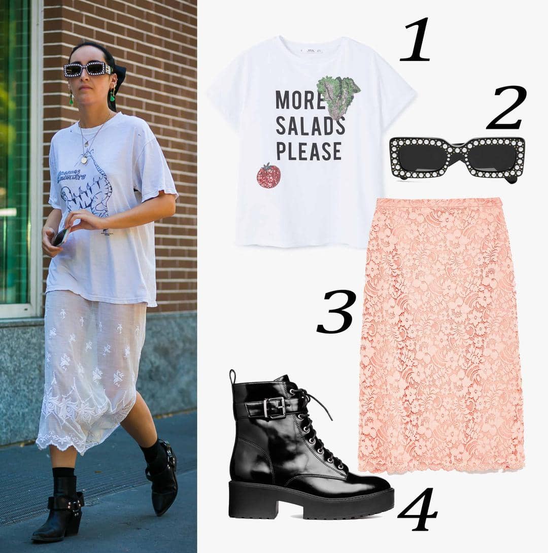 Memilah-milih busana memang enggak gampang. Apalagi kalau sedang buru-buru - ibaratnya mengkombinasikan ini-itu tidak terjadi secara instan. Tapi untungnya - karena fashion begitu bebas dan luas - ada cara malas untuk tampil keren saat waktu tidak menjadi sahabat kita. Gayanya pun terbilang kasual dan nyaman dengan menggabungkan kaos favoritmu (pilih yang grafis) dengan bawahan berdetail seperti rok aksen lace di bawah ini. Tapi yang akan bikin kece adalah kombinasi dari para aksesori statement, yaitu kacamata dan boots yang super cool!