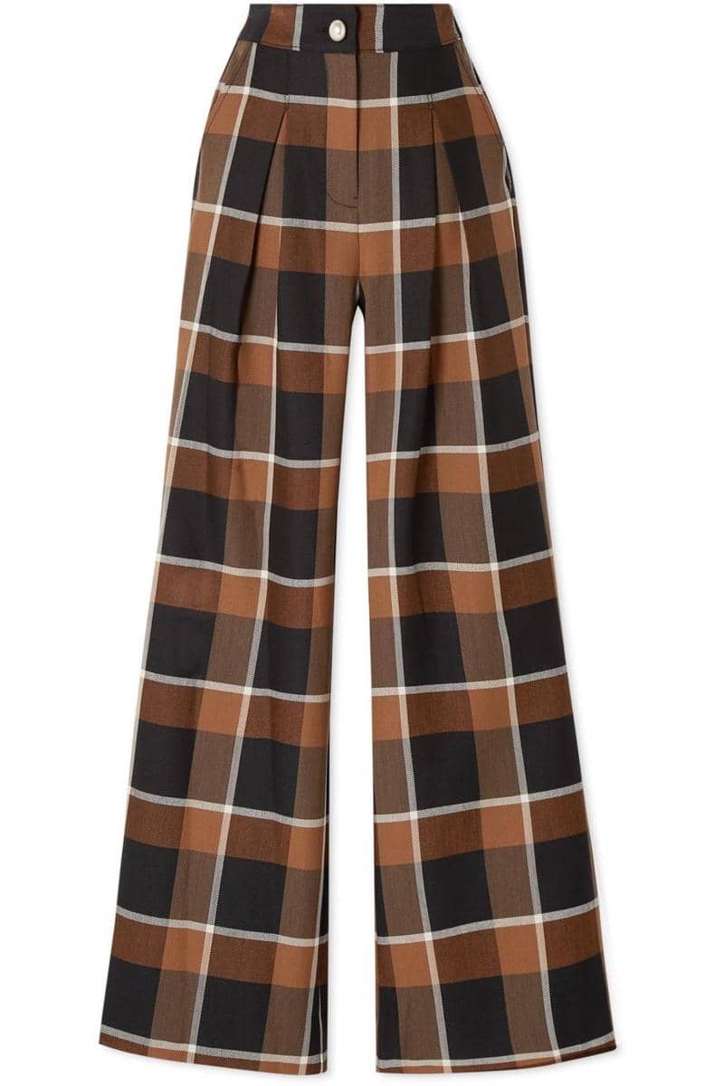 Checked wool-blend wide-leg pants, STAUD, $224.31