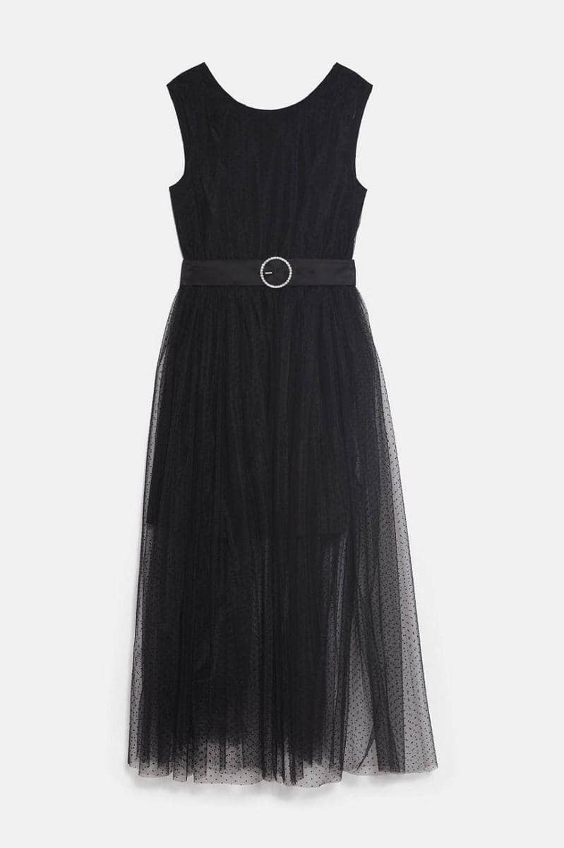 Tulle dotted mesh midi dress, ZARA, IDR 999.900