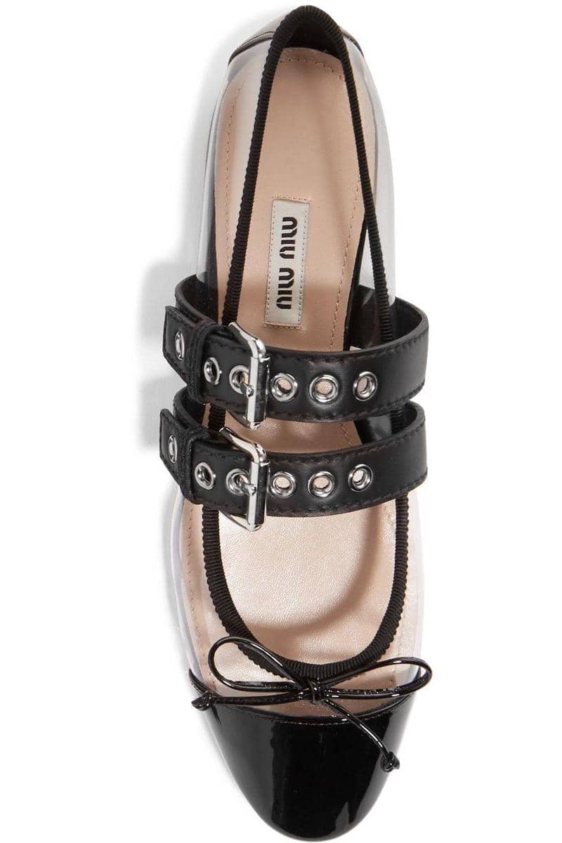 Buckled PVC and leather ballet flats, Miu Miu, $800.00