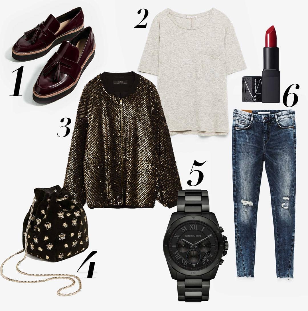 TGIF, Bela! Yuk tampil chic di hari Jumat! Sudah sebuah mandatory style rules dari Popbela untuk selalu tampil keren saat TGIF. Mix and match scoop neck t-shirt dengan ripped denim akan membuat look kamu lebih easy-going di hari Jumat. Untuk sentuhan stylish, tambahkan sequined bomber jacket yang akan secara instan mengangkat total look kamu, Bela. Padukan patent oxford shoes pada outfit untuk sentuhan edgy. Lengkapi outfit dengan embellished bucket bag dan chrono watch. Now you are ready for Friday, Bela!