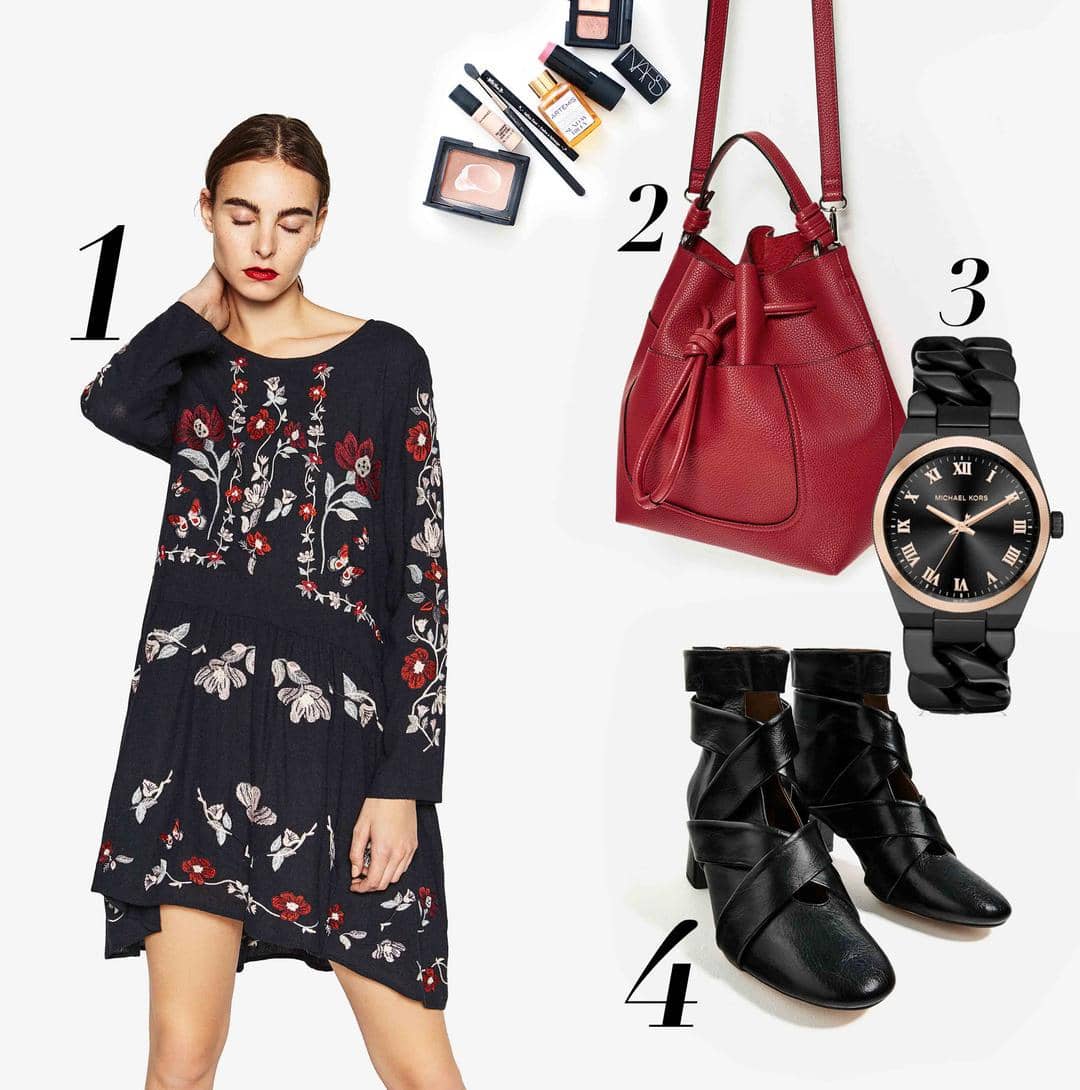 Tampil chic di hari Kamis dengan floral embroidery dress dengan nuansa modern bohemian. Look bohemian pada embroidery dress yang dipadukan dengan kesan rock and roll pada ankle boots akan membuat total look kamu terlihat super chic. Look ini akan membuat kamu tampil feminin dan edgy sekaligus. Lengkapi outfit dengan pebbled leather bucket bag yang matching dengan detail embroidery dan chained steel watch dari Michael Kors. Happy Thursday, Bela!