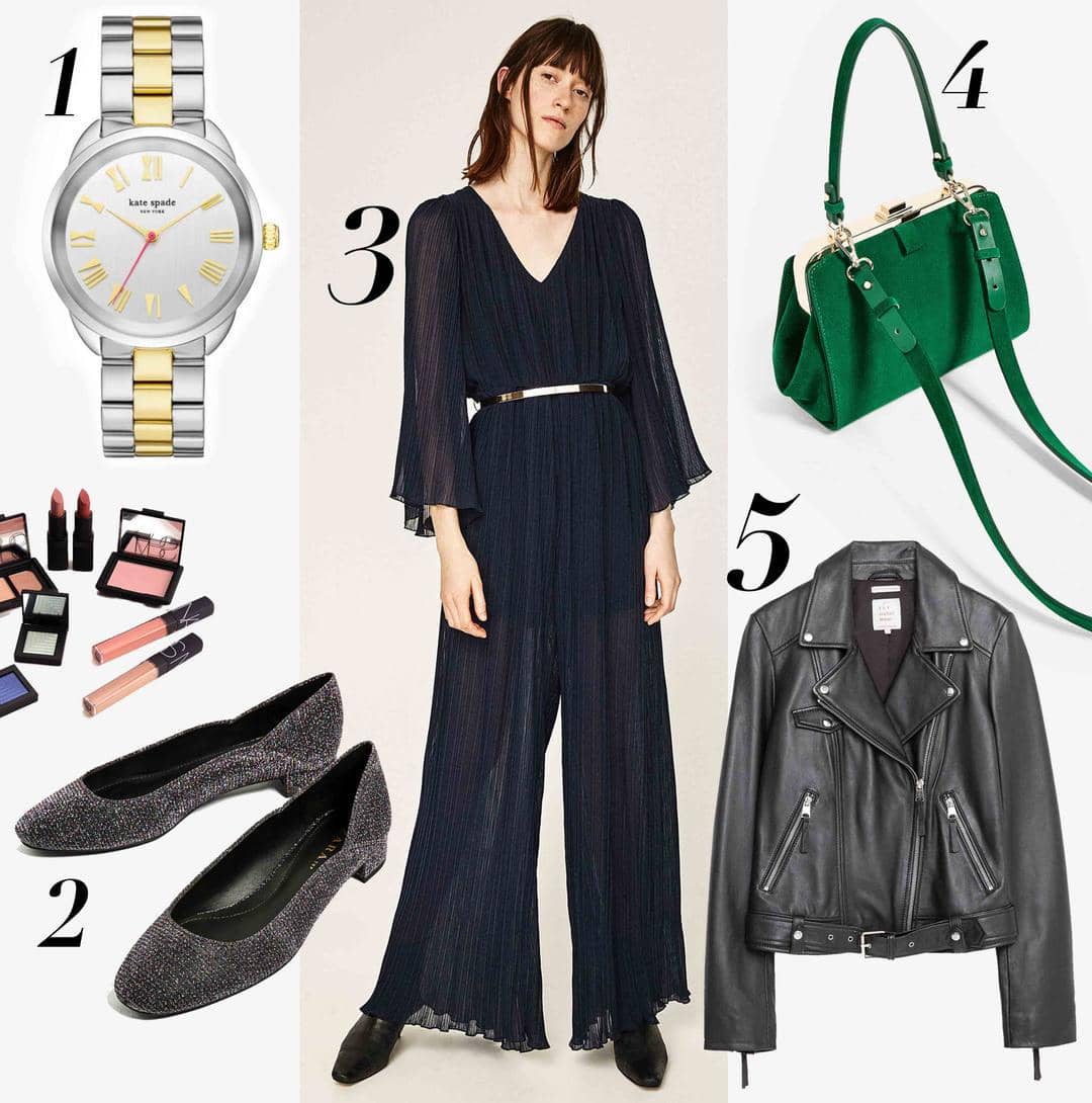 Happy Sunday, Bela! Untuk kamu yang lagi males dandan, namun tetap ingin berpenampilah stylish, kamu bisa mencoba trik dengan jumpsuit! Popbela suka banget merekomendasikan jumpsuit, karena simple namun tetap terlihat stylish. Pleated jumpsuit yang dipadukan dengan leather jacket akan membuat kamu terlihat super chic dan stylish di hari Minggu. Lengkapi outfit dengan glittery aken pada flats shoes yang akan menambah kesan style yang dinamis pada total look kamu. Jangan lupa untuk memakai mini suede satchel bag berwarna terang dan steel watch dari Kate Spade untuk sentuhan yang fun! Happy Sunday, Bela!
