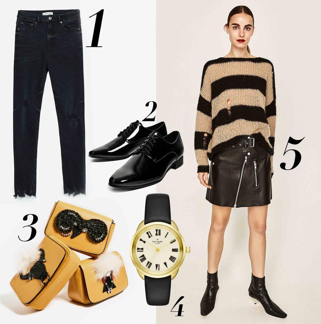 Happy Sunday, Bela! Dengan gaya yang simple, namun dilengkapi dengan detail yang oke, total look kamu akan tetap terlihat super stylish dan chic di hari Minggu. OOTD kali ini akan menampilkan gaya preppy grunge dengan mix and match ripped sweater dan cropped ripped denim. Kesan grunge pada outfit akan terlihat lebih preppy dengan tambahan patent leather oxford shoes. Lengkapi juga total look kamu dengan pilihan fun embelished mini bag dan gold plated leather watch dari Kate Spade. Happy Sunday!