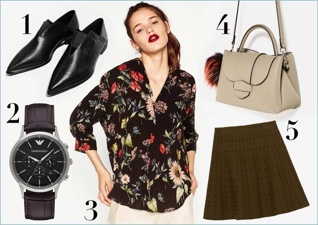 Happy Wednesday, Bela! Yuk tampil super chic ala parisiene di hari Rabu. Mix and match atasan floral dengan rib flared skirt akan membuat kamu terlihat feminin dan elegan. Sentuhan leather loafers pada outfit akan memberikan sentuhan edgy pada total look kamu yang sudah terlihat feminin. Lengkapi tampilanmu dengan mini pebbled leather satchel bag dengan aksesoris pompom, dan croc emboss leather watch dari Emporio Armani. Happy Wednesday, Bela!