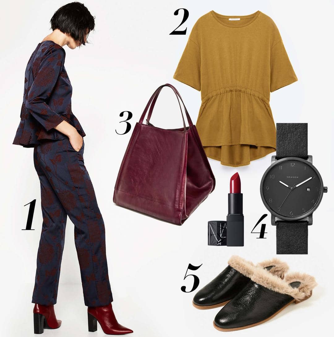 Happy Wednesday, Bela! Yuk tampil sleek dan edgy dengan mix and match patterned trousers dengan t-shirt waist detail. Kamu bisa mempadu-padankan warna mustard pada atasan dengan warna tone yang lebih gelap pada trousers, sehingga kombinasi warna pada outfit terlihat lebih manis dan modern. Lengkapi outfit dengan fur slip on mules untuk aksen edgy, ditambah dengan leather tote bag dan leather watch dari Skagen. Now you are ready for the day!