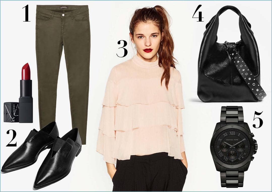 Happy weekend, Bela! Untuk kamu yang ingin tampil santai namun tetap stylish, mix and match flared ruffle top ini adalah jawabannya! Padu padan flared ruffle top degan skinny denim berwarna military green ini akan membuat kamu tampil simple, namun tetap stylish. Lengkapi outfit dengan sentuhan leather loafers untuk tampilan yang lebih edgy. Jangan lupa dengan memakai leather bucket bag dengan sentuhan studs dan steel chronograph watch dari Michael Kors. Happy Saturday, Bela!