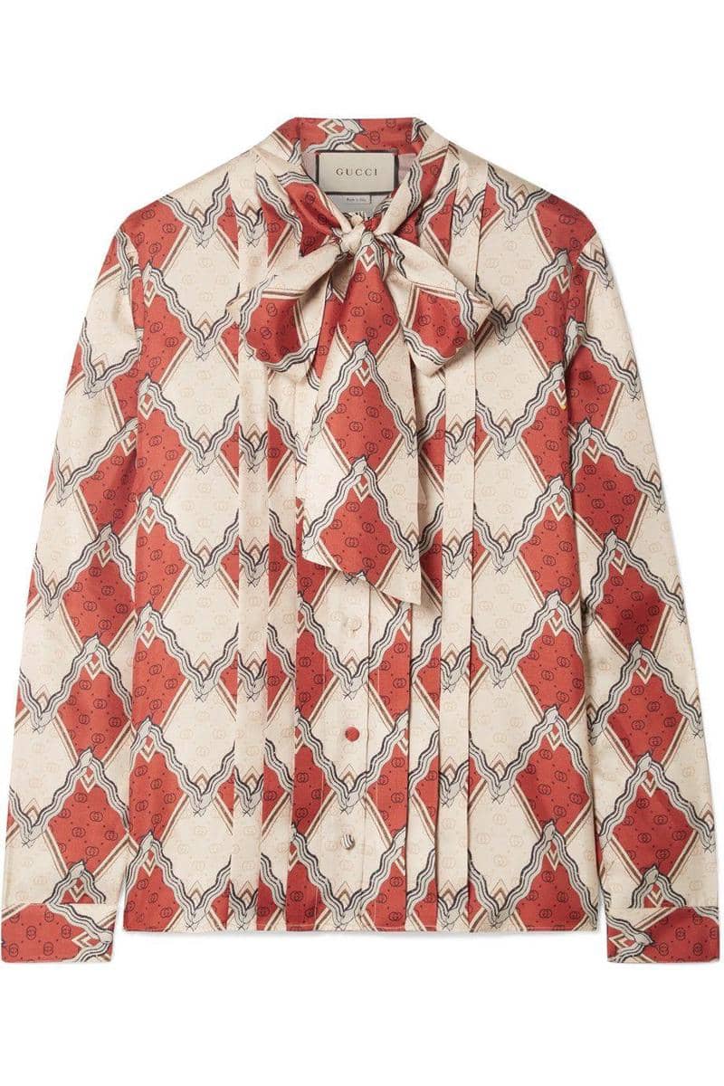 Tampil pede saat meeting tuh penting banget! Tidak memungkiri kalau penampilan akan memengaruhi presentasi kamu. Kalau kamu bukan pencinta blazer, mengandalkan blouse bisa jadi jalan keluarnya. Tentunya jangan basic blouse ya. Kamu bisa memilih varian blouse yang statement. Dari yang model asimetris hingga blouse bermotif playful seperti Gucci di bawah ini.