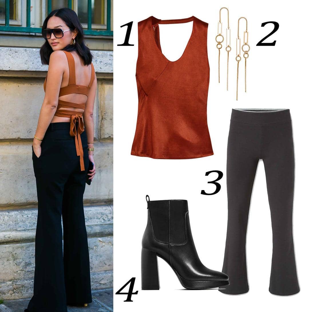 Tampil seksi bukan berarti harus terlihat berlebihan. Ada cara kasual untuk mengenakan busana seksi bagi kamu yang suka mencuri perhatian. Hari ini, simpan sejenak rok andalan kamu dan paduakan atasan beraksen backless dengan celana panjang berpotongan flare. Biarkan tampilanmu se-simpel itu dan lengkapi juga dengan ankle boots dan earrings yang statement.