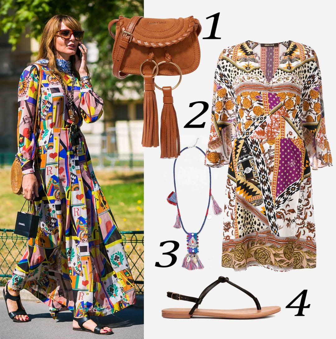 Memakai busana print sudah termasuk statement. Cuma yang harus kamu perhatikan adalah soal mengkombinasikannya agar tidak terlalu ramai. Cara yang paling ampuh adalah dengan membiarkan busana print kamu terlihat cetar dengan sendirinya. Tambahkan aksesori seru seperti kalung dan tas tassel yang playful. Sementara pemakaian sandal tepat untuk menyempurnakan gaya yang cocok untuk kita yang tinggal di negara tropis ini.