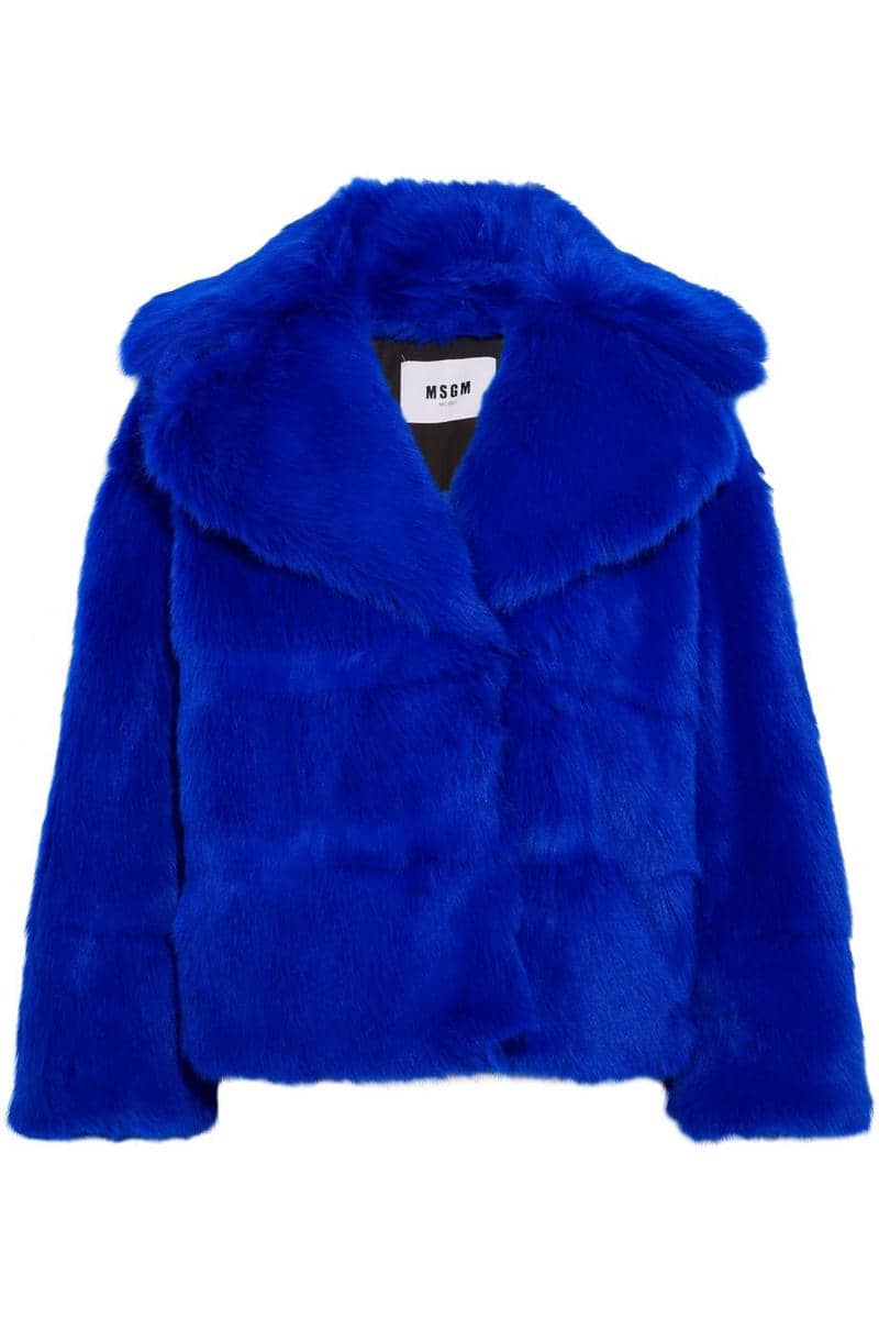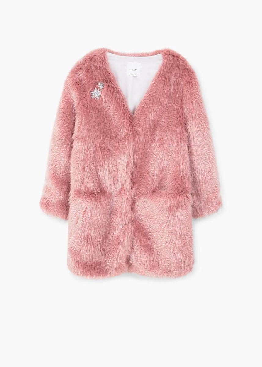 Brooch faux fur coat, Mango, IDR 1,699,000