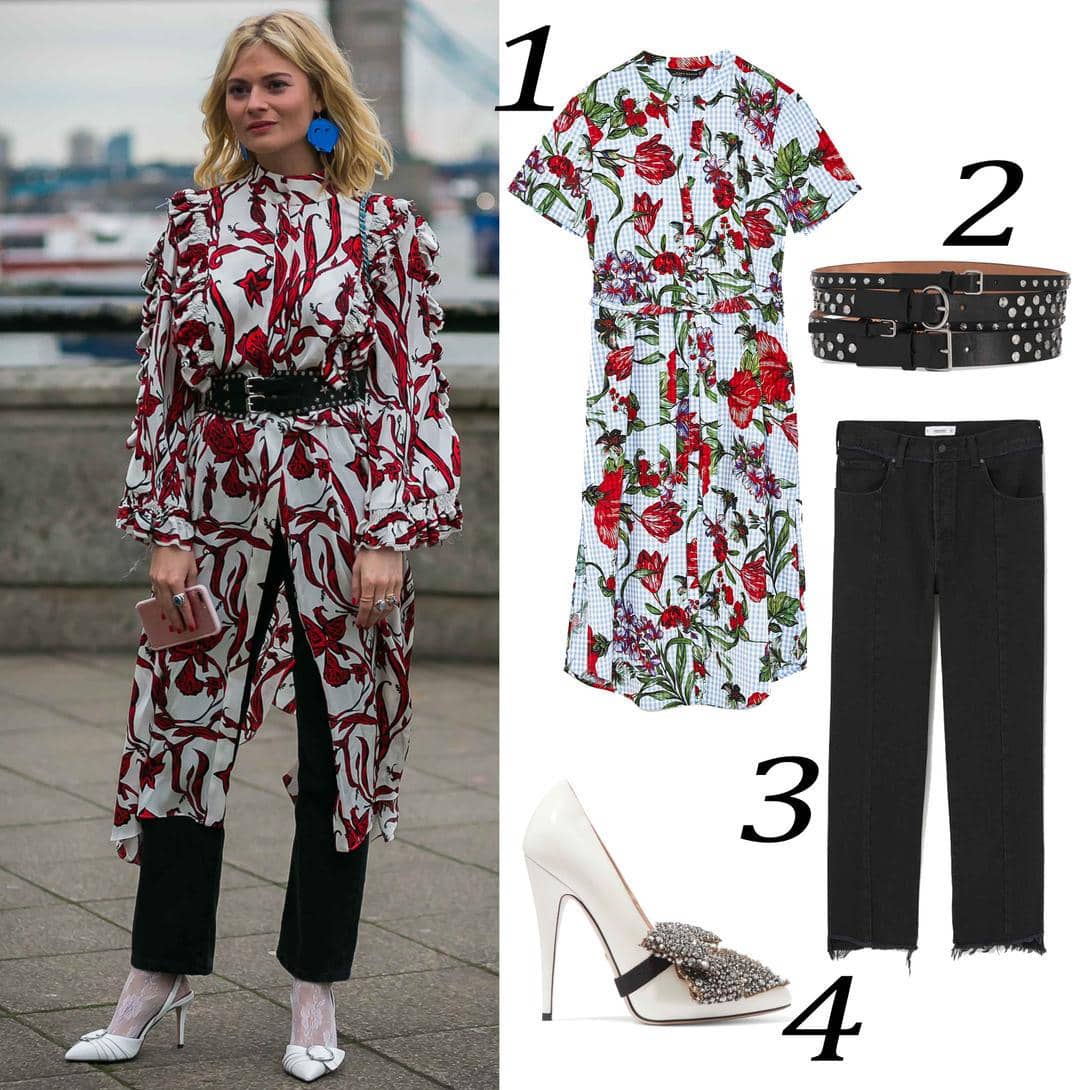 Untuk membuat gaya baru dalam berpenampilan ternyata nggak terlalu susah kok Bela. Salah satunya seperti yang di bawah ini! Dimana kamu bisa menggabungkan long dress dengan jeans favorit kamu. Nah untuk menambah kesan fresh, pilih motif floral yang sedang happening. Sisipkan juga unsur edgy lewat permainan aksesori seperti anting yang bold atau waist belt, dan sepatu hak tinggi putih.