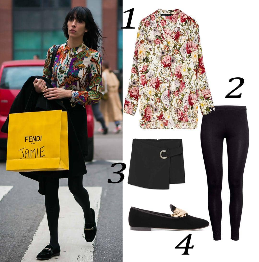Banyak cara untuk membuat busana floral kamu lebih menarik. Salah satunya dengan padu-padan ala preppy yang dilakukan oleh top model Jamie Bochert. Seimbangkan motif floral yang semarak dengan kombinasi rok dan leggings yang cool. Terakhir, kenakan sepatu loafers yang nyaman.