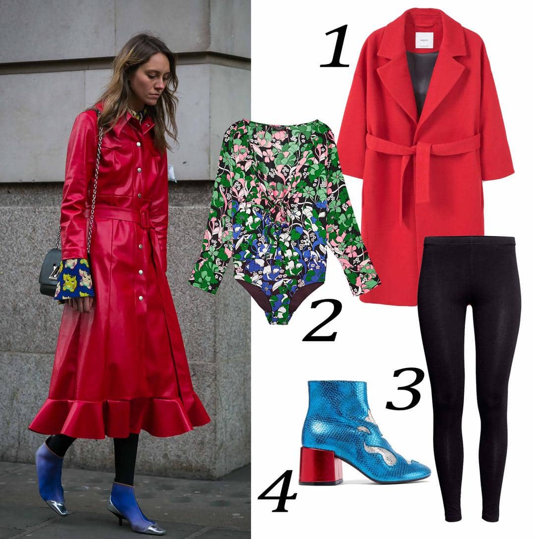 Nggak ada yang lebih statement selain sebuah luaran yang bold! Terlebih dalam warna merah yang berani. Untuk memberikan sentuhan fresh, kamu bisa mengenakan atasan print sebagai kejutannya. Dan kalau kamu mau lebih hits lagi, kenakan ankle boots dalam warna kontras seperti biru metalik di bawah ini.