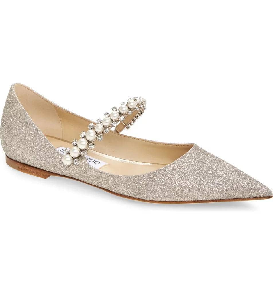 Sparkly pointed toe flats with pearls, Jimmy Choo, $975