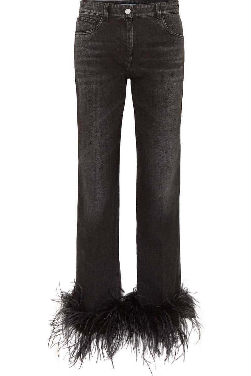 Cropped feather-trimmed straight-leg jeans, Prada, $825.97