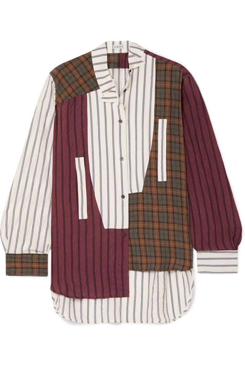 Oversized asymmetric patchwork printed voile shirt, Loewe, $705.73